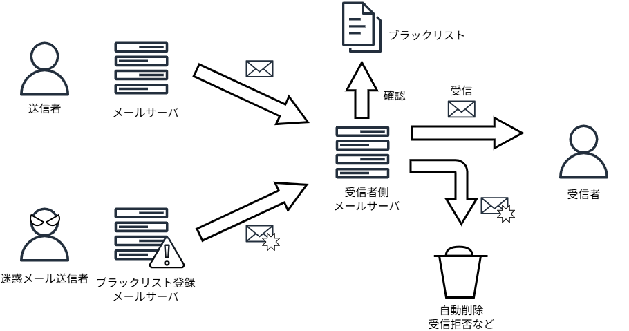 図2:ブラックリストによる迷惑メール対策