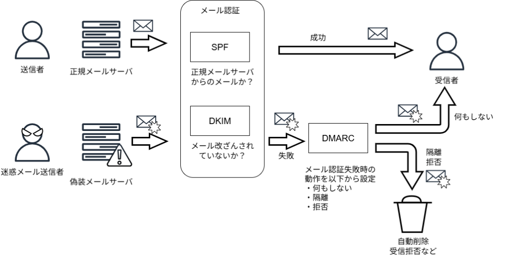 図3:SPF、DKIM、DMARCによる迷惑メール対策